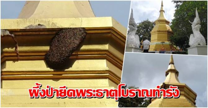 ฝูงผึ้งป่ายึดพระธาตุโบราณอายุกว่า 1,038 ปี ทำรังอยู่อาศัยไม่ยอมหนี