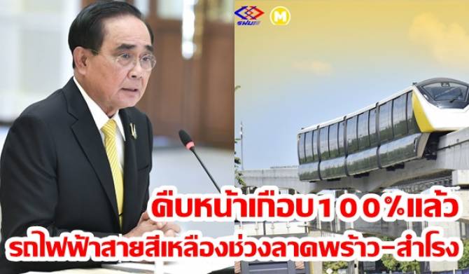 "ทิพานัน" โชว์ผลงาน "บิ๊กตู่" คืบหน้าเกือบ100%แล้ว รถไฟฟ้าสายสีเหลืองช่วงลาดพร้าว-สำโรง
