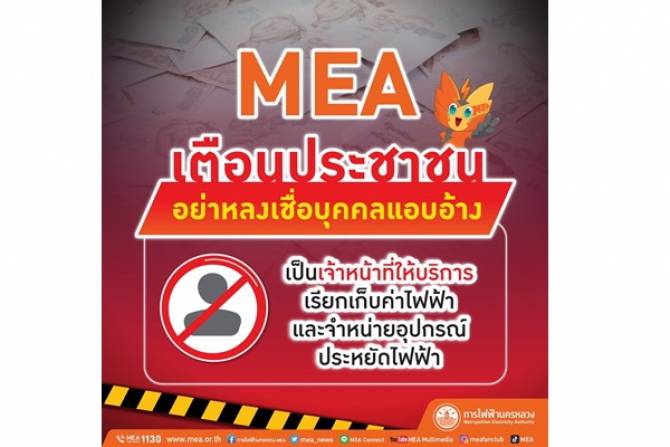 MEA เตือนประชาชนอย่าหลงเชื่อบุคคลแอบอ้าง เรียกเก็บค่าไฟฟ้า