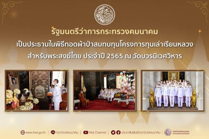 "ศักดิ์สยาม" เป็นประธานในพิธีทอดผ้าป่าสมทบทุน โครงการทุนเล่าเรียนหลวงสำหรับพระสงฆ์ไทย...