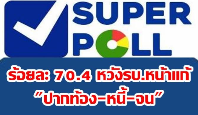 ซูเปอร์โพลเผยร้อยละ 70.4 หวังรบ.หน้าแก้"ปากท้อง-หนี้-จน" "อนุทิน" มาแรงแซง...