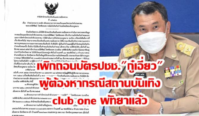 "ปลัดมท." เผยเพิกถอนสูติบัตร-บัตรประชาชน "กู๋เอี่ยว" ผู้ต้องหากรณีสถานบันเทิง club one พัทยาแล้ว