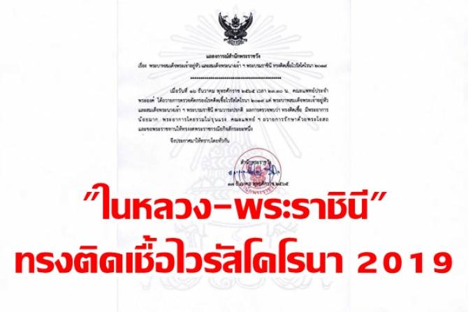 แถลงการณ์สำนักพระราชวัง "ในหลวง-พระราชินี" ทรงติดเชื้อไวรัสโคโรนา 2019