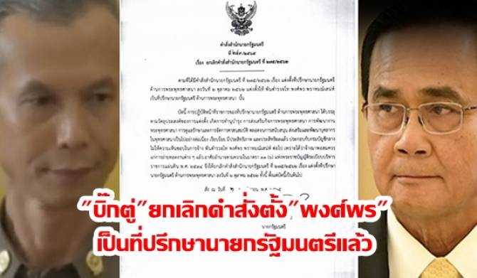 "บิ๊กตู่" ยกเลิกคำสั่งตั้ง "พงศ์พร" เป็นที่ปรึกษานายกรัฐมนตรีแล้ว