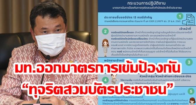 มท.ออกมาตรการคุมเข้มป้องกันแก้ไขปัญหา “ทุจริตสวมบัตรประชาชน”
